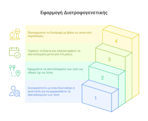 - Εάν γνωρίζεις συγκεκριμένες γενετικές παραλλαγές (π.χ. μειωμένη ικανότητα μεταβολισμού λίπους), μπορείς να ενισχύσεις την πρόσληψη από άλλες ποιοτικές πηγές ή να ρυθμίσεις τις αναλογίες μακροθρεπτικών, επι τη ευκαιρεία δες εδώ μια συνταγή χαμηλή σε λιπαρά.