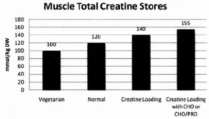 Που δείχνει ότι η κατανάλωση του μαζί με μια πηγή υδατάνθρακα ή πρωτεΐνης ή τον συνδυασμό αυτών (~47γρ υδατάνθρακα + ~50γρ πρωτεΐνης) των 2 δείχνει μια μικρή βελτίωση στην αποθήκευση κρεατίνης στους μυς!